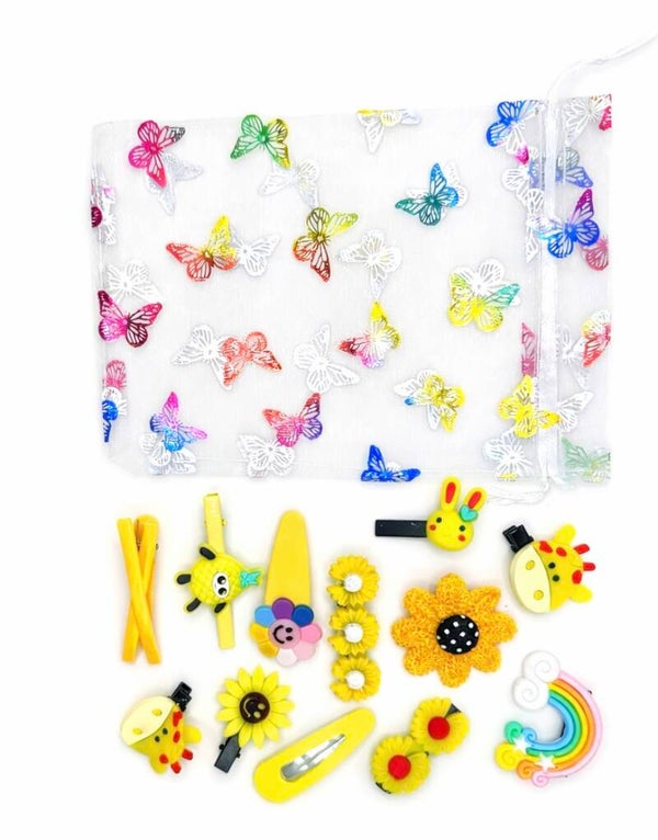 - A bright mix of nature-inspired and playful hair clips