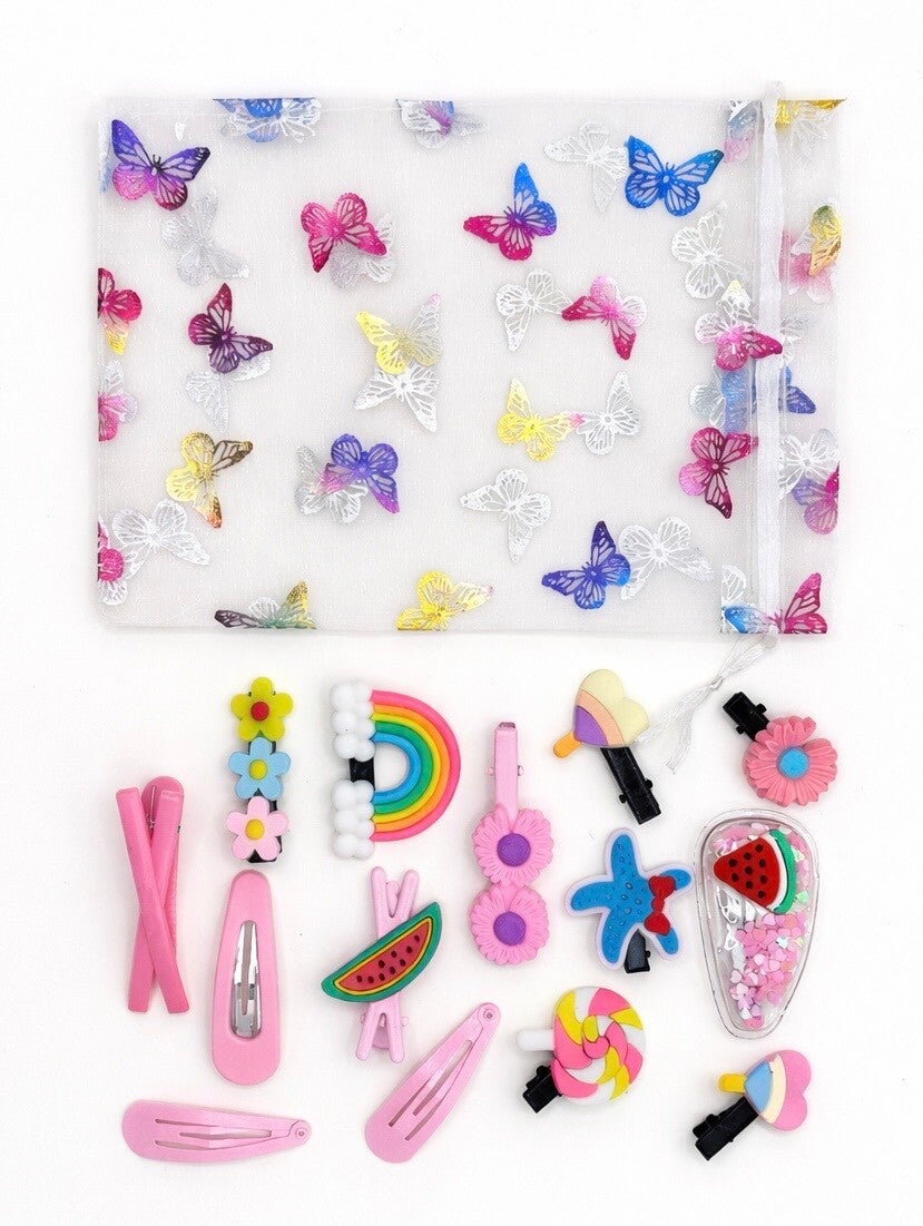 - A pastel mix of floral and sweet-inspired clips